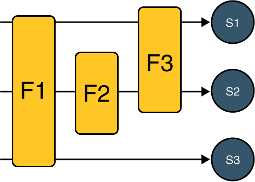 You can map a filter to one or more web resources and you can map more than one filter to a web resource. This is illustrated in Figure 3-4, where filter F1 is mapped to servlets S1, S2, and S3, filter F2 is mapped to servlet S2, and filter F3 is mapped to servlets S1 and S2.